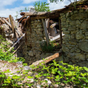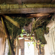 Als wir näher kamen, bot sich uns ein schlimmer Anblick. Das Dach war mittlerweile komplett in den ersten Stock eingestürzt. Dadurch war dieser nicht mehr begehbar. Die Treppe nach oben war noch vorhanden, aber wir haben uns nicht nach oben gewagt. Es sah zu einsturzgefährdet aus.