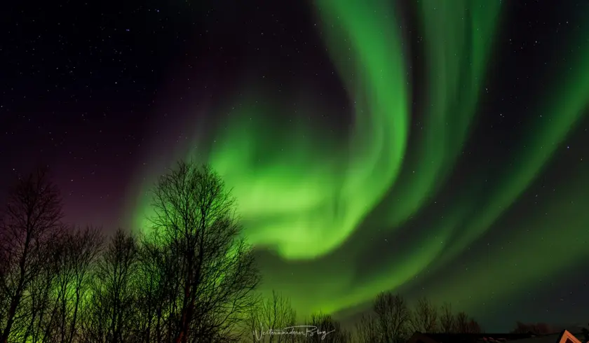 Je stärker das Polarlicht tanzt, desto kürzer sollte die Belichtungszeit sein. Ein ruhiges, schwaches Polarlicht darf etwas länger belichtet werden, ein schneller „Vorhang” hingegen benötigt 2–3 Sekunden, da es sonst verwischt. Auch die Sterne beginnen zu „wandern”. Der Himmel ist immer in Bewegung.